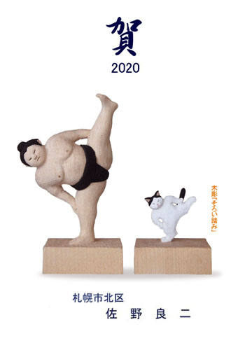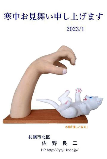 年賀状に自刻の木彫作品を入れている。ここ数年、猫のいろいろなポーズを彫っているので、毎年猫を登場させることになる。しかし、干支に猫は入っていないから、年始挨拶にそぐわないという人がいるかもしれない。