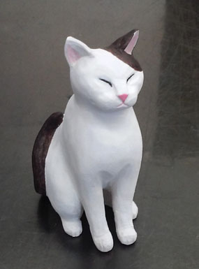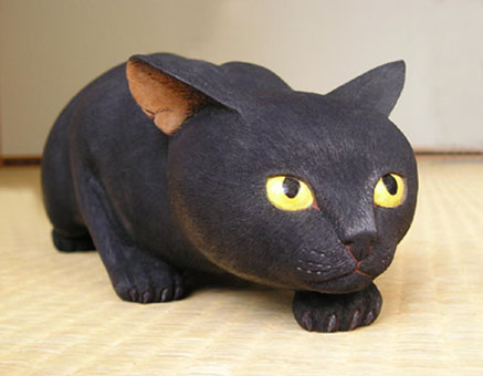 餌要らず糞処理もなし木彫の猫 良二