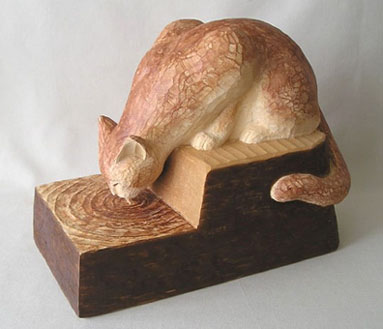 木彫3年目、形の面白さから猫を彫ることが多い。
