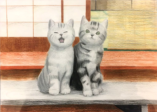 次女の長女(つまり私の孫・大学1年生)が飼い猫“ゆず”を描いた。