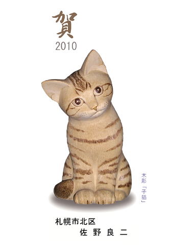 ●木彫猫の年賀状、シリーズに