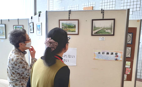 ●北老センター文化祭展示 水彩画の受講生と共に