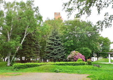 初めての野外スケッチは、北海道大学の隣にある「札幌農学校第2農場(重要文化財)」。木々に囲まれた広い敷地に明治開拓期の家畜飼養施設が建ち並ぶ。赤い屋根の木造建築は古色蒼然たる風格があるが、受講生の私の課題は樹木が第一目標、しかし景色に目移りして落ち着かず、ラフスケッチしただけ。けっきょく、帰ってからスマホで撮った写真をじっくり吟味して描くことになった。木が描けないところに池まで写してしまい、水面をどう描いたらいいか見当もつかなかったが、やっとここまで。(2024/6/21)