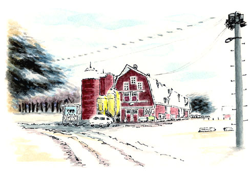 銭函の海沿いにあるストアハウス“大坂屋”は、講師お気に入りの店とか。かつて質屋だった石蔵を改装し、屋号もそのまま店名にした由。古色然とした建物に、正面のオブジェはハッカク(北海道で獲れる魚)の取り合わせがなんともユーモラス。店内は昭和のアンティークが置かれていて、ノスタルジックな雰囲気だという。行ってみたいなと思って描いた。