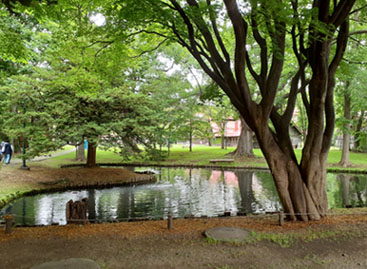 ●「木立と池」 初の野外スケッチ