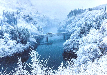 ●「只見川雪景色」 青1色で描く