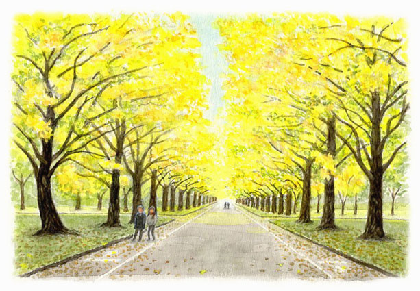●「イチョウ並木」 黄色の華やかさ