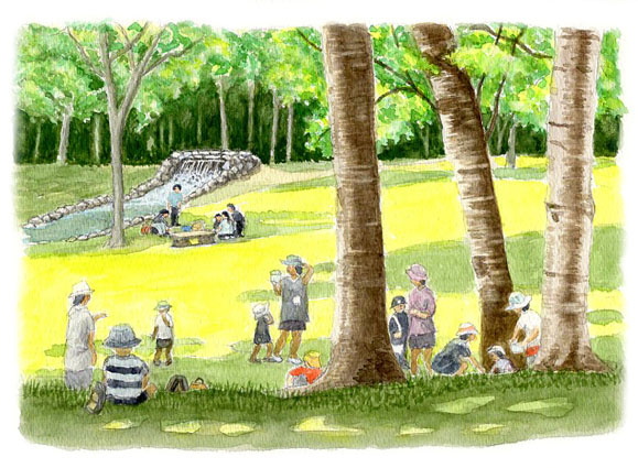 ●「緑陰の憩い」 風景の中の人々